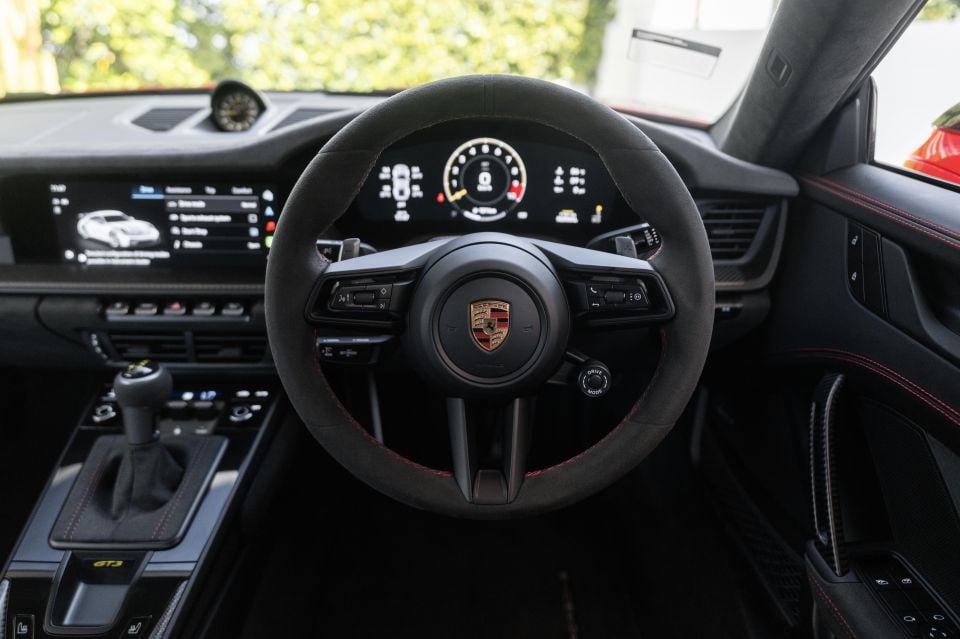 Australia gets both gearbox options: the six-speed manual and seven-speed PDK dual-clutch automatic, each calibrated specifically for the GT3’s high-revving personality.