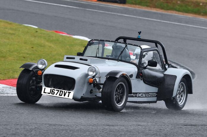 If there is turbo lag, and even at low boost pressures I suppose there must be some, you don’t really notice it in a car as light as a Seven. Perhaps it would be more notable in the dry, but in the wet there’s sufficient response to light up the rear tyres out of Druids hairpin easily, and even in higher-speed corners enough to straighten the car’s line without feeling like you’re waiting for the engine to do your bidding.