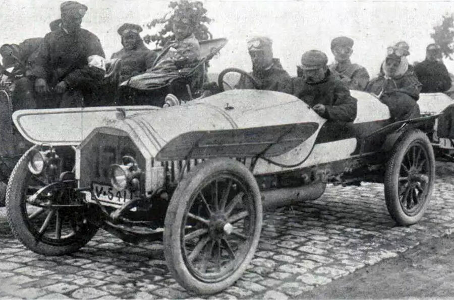 Some unpleasantness befell the tourists this time: one car was immolated by a spectator’s discarded match while refuelling, another hit a tree, killing its driver, and all were drenched by thunderstorms. The winner was Ferdinand Porsche in an Austro-Daimler of his own design – which was promptly added to the Austrian manufacturer’s range, with its “remarkably interesting” engine.