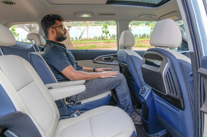 Middle row space remains unchanged from regular Carens; panoramic sunroof allows more light.