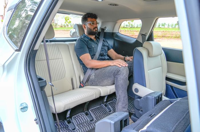 Getting into the third row is a bit easier now thanks to a one-touch tumble and fold feature on the left seat. Once inside, there is adequate space for two adults, and since the middle row is adjustable, one can find a comfy spot. There are AC vents and USB ports in the rear, along with adjustable headrests and seatbelts.