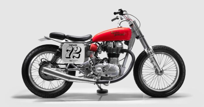 We have another Frontwheel-built Royal Enfield flat tracker for you to ogle today, although this one is very different from the last. For one, it uses an older donor—a 2016-model Royal Enfield Bullet 500. It also sports a much more vintage aesthetic, drawing inspiration from the Triumph Trackmaster flat track race bikes of the early 70s.